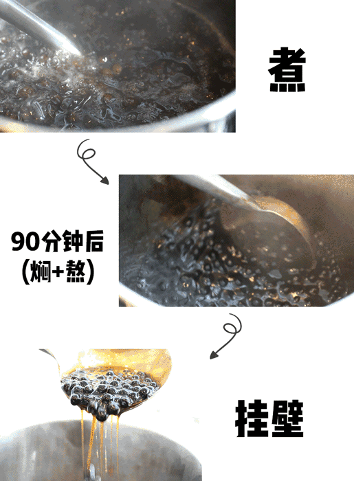 经过数小时精心熬制的黑糖,慢慢地将手作的珍珠层层包裹~每一颗都充分吸收黑糖的焦香,除了Q弹软糯,满满的都是台湾复古味!